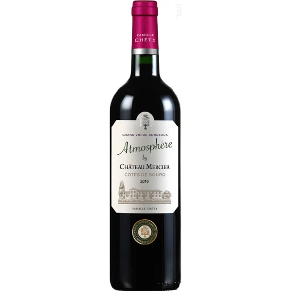 Un vin rouge riche et onctueux. Le vin Atmosphère by Château Mercier est un vin Rouge produit dans la région Bordeaux en France, par Famille Chéty – Château Mercier. Ce millésime 2020 est issu de l’appellation Côtes-de-Bourg. Il est vendu sur Twil au prix de 9,90 € la bouteille de 75cl, dès le minimum de 3 bouteille(s). Sa température de dégustation idéale est de 16°. Son producteur, Famille Chéty – Château Mercier, produit 6 vin(s) disponible(s) à l’achat.