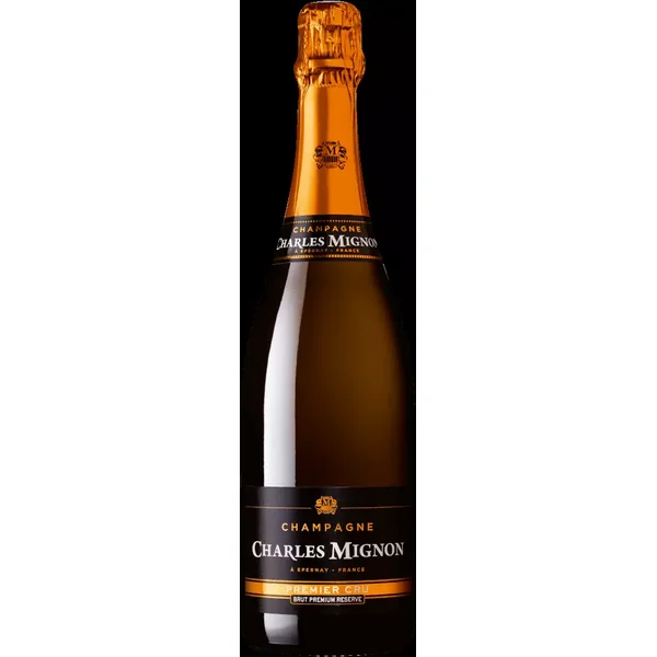 Le Champagne Charles Mignon Brut Premium Réserve Premier Cru de la maison Charles Migon apparaît doré dans le verre et exhale un parfum de pain grillé très fin, de roses fraîches comme la rosée et de pêche. En bouche, il présente un perlage fin, des notes minérales et une finale légèrement sucrée. Ce champagne particulièrement harmonieux, finement fruité et délicat est vinifié à partir de raisins issus de terroirs Premier Cru et de la Côte des Blancs.