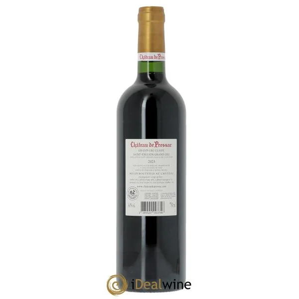 Grand Cru Classé du vignoble de Saint-Emilion, le château de Pressac est une véritable pépite que l’équipe iDealwine apprécie pour la grande finesse et l’ambivalence de son vin. Car, si celui-ci s’apprécie après quelques années de garde, comme en sont capables les grands vins de Bordeaux, il se savoure très bien dans sa jeunesse. Pour le réaliser, le château a assemblé des cépages comme le merlot (majoritaire à plus de 70%), le cabernet-franc, le cabernet-sauvignon, le pressac (qui s’avère être du malbec), du carménère et du petit verdot. Les rendements oscillent entre 35 et 40 hectolitres par hectare. Les vignes sont entretenues selon des principes de culture propres à la Certification HVE 3 que la propriété détient. Ainsi, les sols sont travaillés, la taille se fait en double Guyot, des ébourgeonnages ainsi que des effeuillages, des échardages et des éclaircissages sont de mise. Les vendanges se font à la main, en petites caisses, et sont sévèrement triées. Les raisins sont totalement égrappés avant la vinification. La vinification, parlons-en. Celle-ci se veut parcellaire et se fait dans des cuves en béton thermorégulées. Une macération préfermentaire a lieu afin d’extraire la bonne quantité de couleur, de saveurs et d’arômes. Des remontages, des pigeages ainsi que des délestages (des techniques d’extraction) sont effectuées si besoin. Quant à la fermentation malolactique, elle se fait en partie dans des barriques neuves. Enfin, le vin est élevé sous bois (50% de bois neuf) pendant 18 mois. La dégustation révèle un vin porté par des notes de fruits rouges et noirs, d’épices et de sous-bois. Ses tanins fins et sa texture soyeuse lui assurent à la fois un bon potentiel de garde mais aussi la possibilité d’une consommation rapide, sur le fruit.