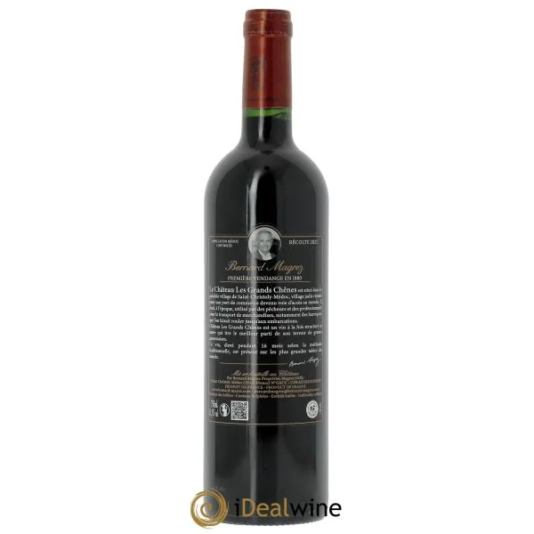 Propriété de Bernard Magrez depuis 1998, le château Les Grands Chênes est situé à Saint Christoly-du-Médoc, à proximité de l’estuaire de la Gironde. Installé sur une croupe de graves, le vaste domaine s’étend sur 55 hectares dont les premières plantations remontent à 1880. Il abrite également les vestiges d’une forteresse du XVIème siècle. Le nom du château est une référence au bois de chêne dont étaient constitués les navires de commerce transitant autrefois par le port de Saint-Christoly, et qui ont emmené les vins de Bordeaux à l’assaut du monde.