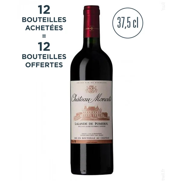 POUR 12 BOUTEILLES ACHETÉES : 12 BOUTEILLES OFFERTES. En 2007, sucrosité et rondeur sont les maîtres mots du Lalande-de-Pomerol de Château Moncets. Cerises griottes, cassis, notes fumées s’harmonisent agréablement en bouche. Les tanins sont souples, la bouche fraîche et épicée (poivre).