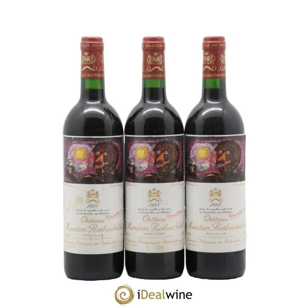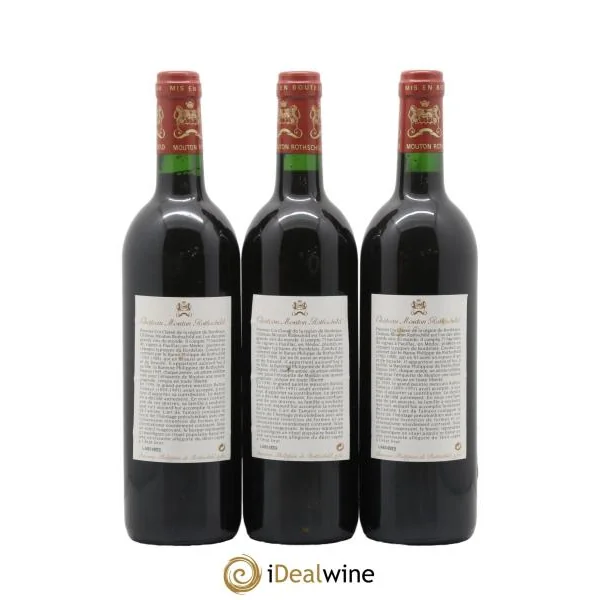 Quantité : 3 bouteillesObservations : 3 Étiquettes légèrement fripées, 3 Étiquettes très légèrement marquées, 3 Étiquettes légèrement décolléesNiveau : 3 NormalProvenance : particulierTVA récupérable : nonRégion : BordeauxAppellation : PauillacClassement : 1er Grand Cru ClasséPropriétaire : Famille Rothschild