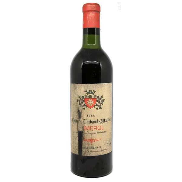 Château thibaud maillet 1950pomerolissu de la prestigieuse appellation de pomerol, ce vin du château thibaud-maillet offre au nez ce fameux « bouquet » que peuvent parfois atteindre les grands vins en vieillissant.un très joli flacon que vous aurez plaisir à ouvrir et qui saura vous révéler les plaisirs d’un vieux pomerol.