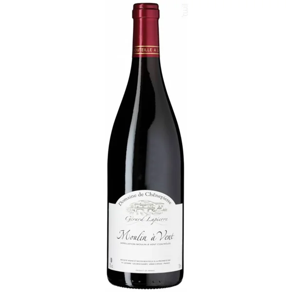 Parfum complet de cerises rouges et de grenade, agréables#arômes de fruits, corps compact, finessesucre résiduel:0,30g/l / acidité:3,63g/lle moulin a vent du domaine de chęnepierre ne fait pas partie des plus connus, mais certainement des meilleurs crus du beaujolais. Les ceps ont presque 50 ans et il est vendangé exclusivement à la main, pressé très délicatement et vinifié traditionnellement aussi bien en grands fûts de chêne qu’en barriques, ce qui donne à ce vin très concentré finesse et élégance. Allergene:enthält sulfite