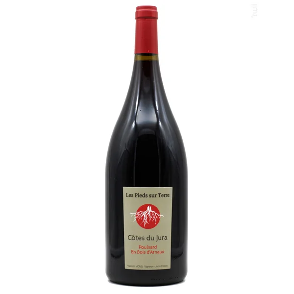 La cuvée aux bois d’arnaud du domaine les pieds sur terre provient de vignes de poulsard âgées de plus de 40 ans. Vendanges manuelles, macération après éraflage pendant 15 jours. Fermentations alcoolique, malolactique et élevage en cuve inox. Non filtré, sans sulfites ajoutés. Le nez de ce vin nous révèle d’excellentes notes