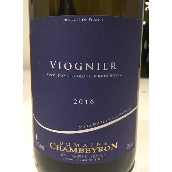 Le vin IGP Viognier est un vin Blanc produit dans la région Vallée du Rhône en France, par Domaine Chambeyron. Ce millésime 2016 est issu de l’appellation Vin de Pays des Collines Rhodaniennes. Il est vendu sur Twil au prix de 12,00 € la bouteille de 75cl, dès le minimum de 3 bouteille(s). Sa température de dégustation idéale est de 10°. Son producteur, Domaine Chambeyron, produit 5 vin(s) disponible(s) à l’achat.