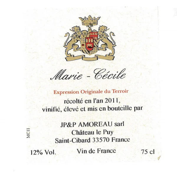 Fruité, complexe. Le vin Marie Cecile est un vin Blanc produit dans la région Autres en France, par Château Le Puy. Ce millésime 2023 est issu de l’appellation Vin de France. Il est vendu sur Twil au prix de 54,00 € la bouteille de 75cl, dès le minimum de 1 bouteille(s). Son producteur, Château Le Puy, produit 61 vin(s) disponible(s) à l’achat.